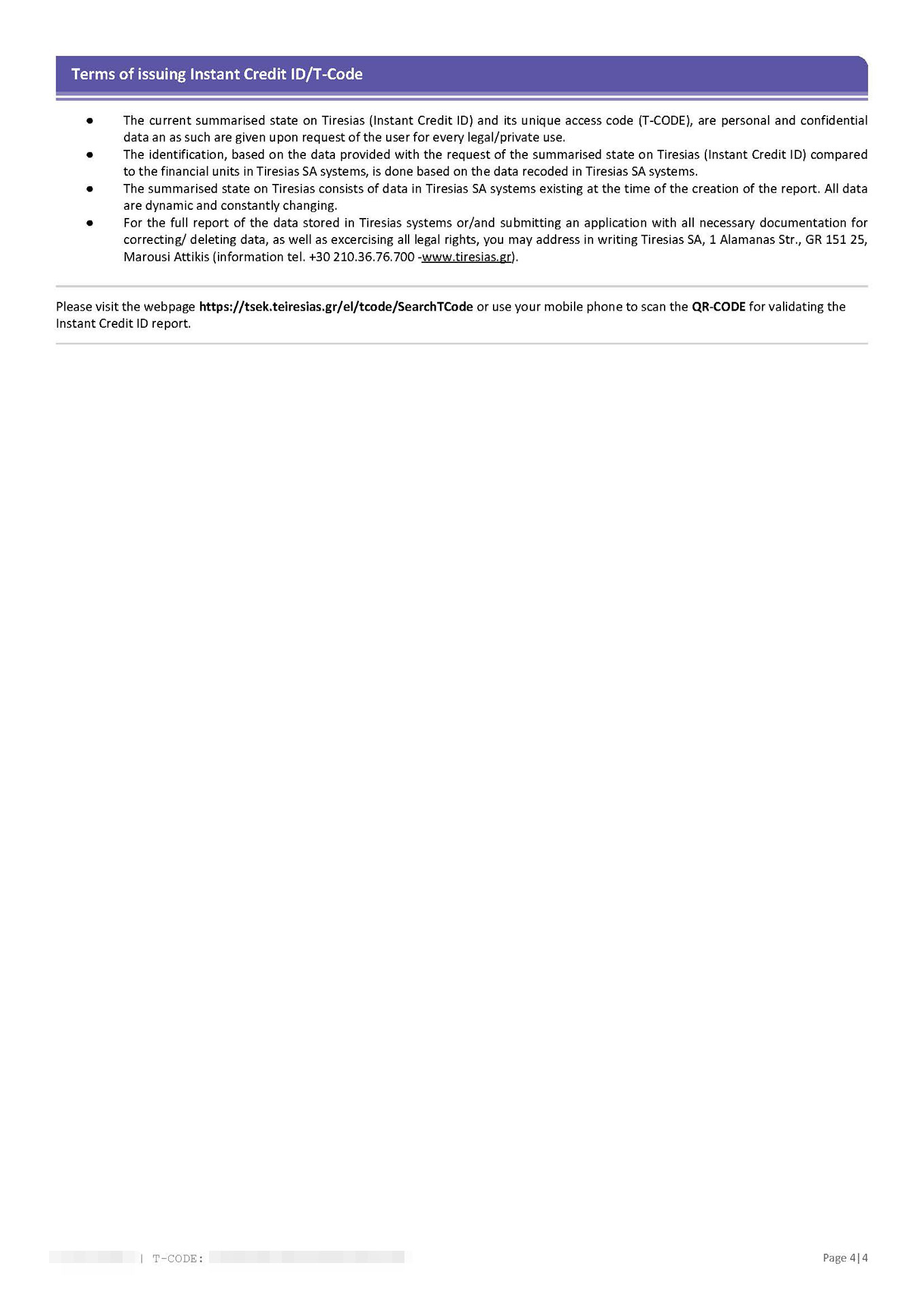 Note: Instant Credit ID does not replace the exercise of the subjects' right of access to their data in Tiresias, in accordance with No. 15 of the General Data Protection Regulation (GDPR) EU 2016/679.